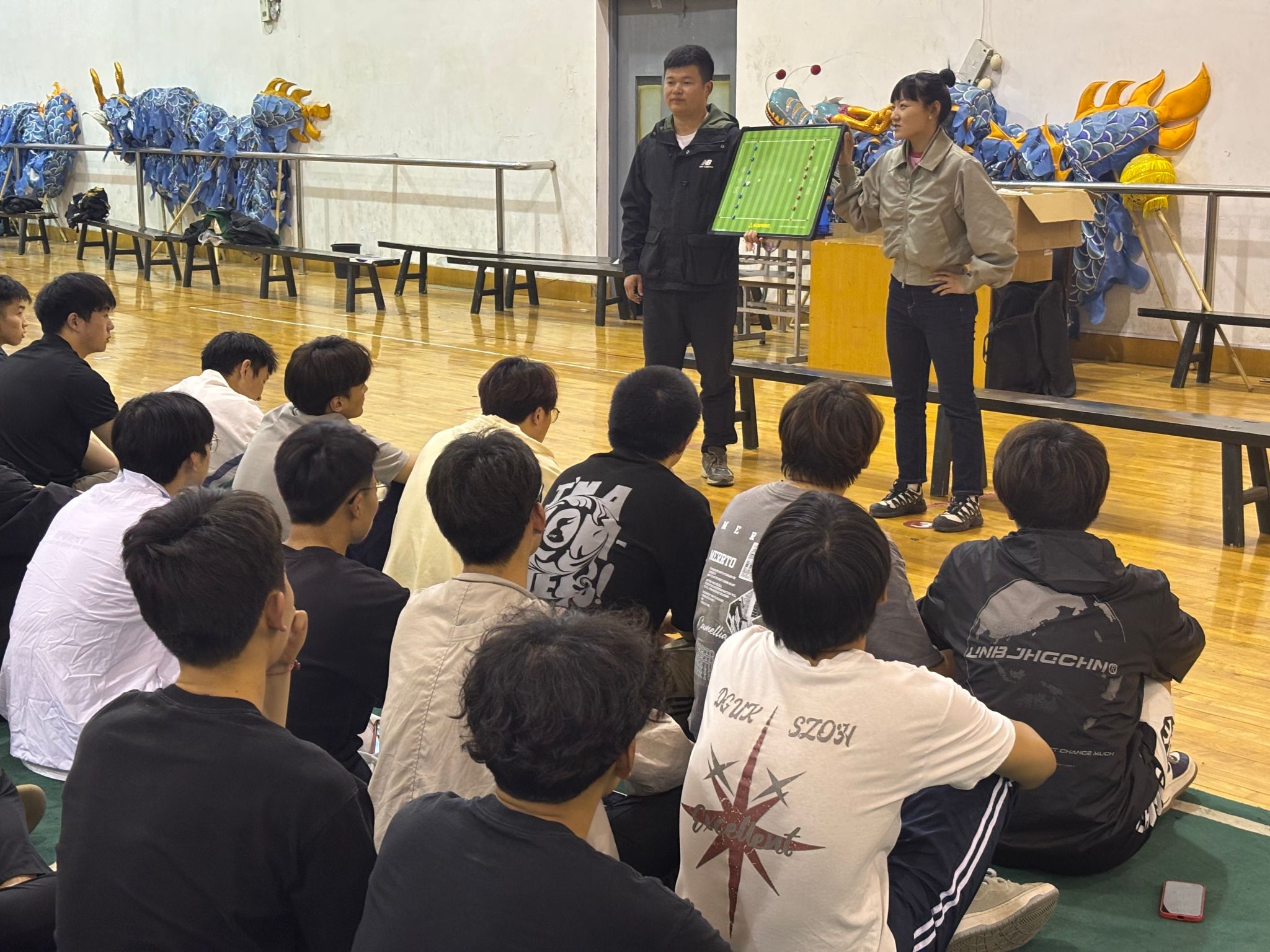 培训现场,淮安市飞盘运动协会的专业教练们首先为同学们详细讲解了飞盘运动的起源、发展历史以及基本规则。随后,教练们亲自示范了各种飞盘技巧,包括正手掷盘、反手掷盘、接盘等基础动作。同学们认真聆听,仔细观察教练的动作要领,不少同学还拿出笔记本记录关键要点。
