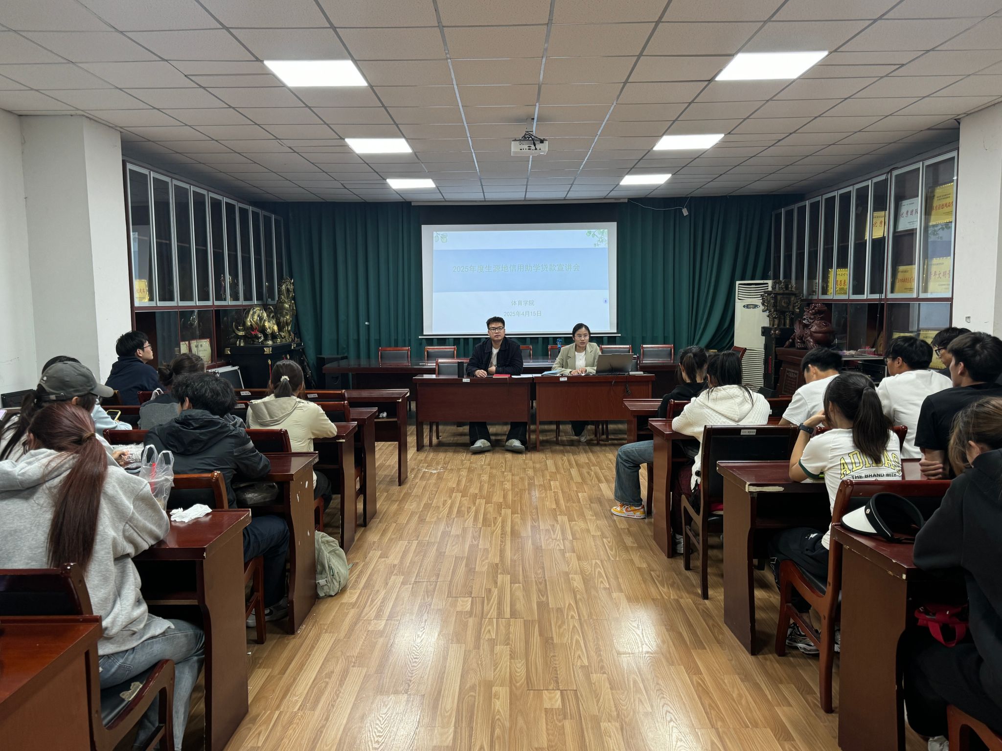 4月15日晚,学院召开2025年度生源地信用助学贷款知识宣讲会。本次宣讲会由学院资助辅导员纪群主持,各班班长、团支书积极参与宣讲会。