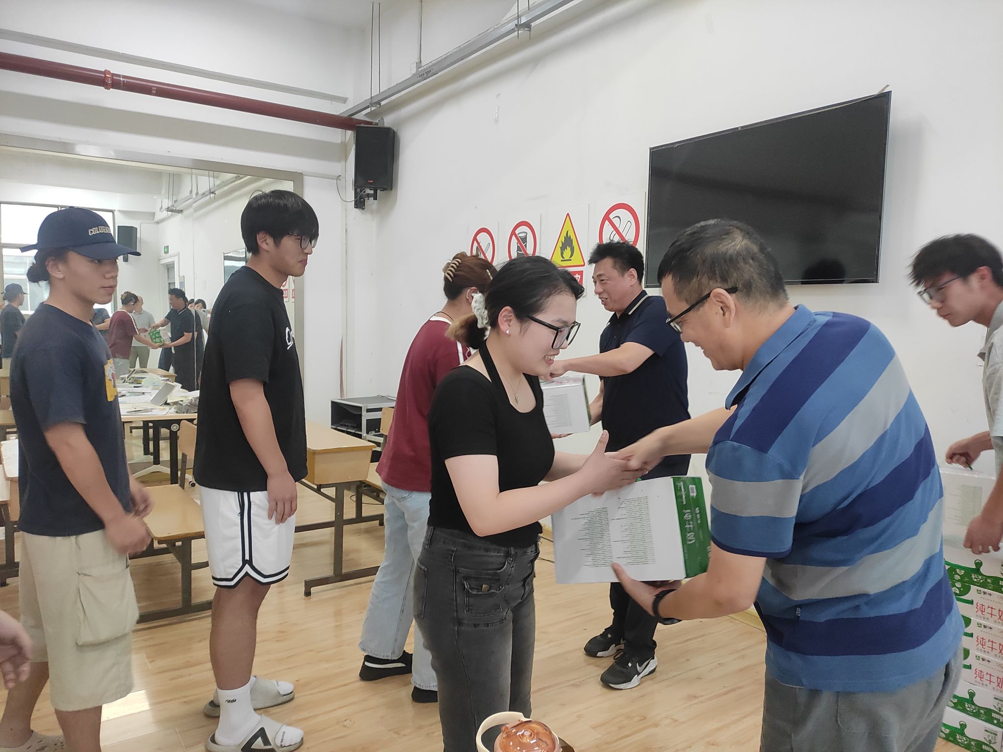 图为学院领导为留校学生发放暑期慰问品现场。 记者 纪群 摄