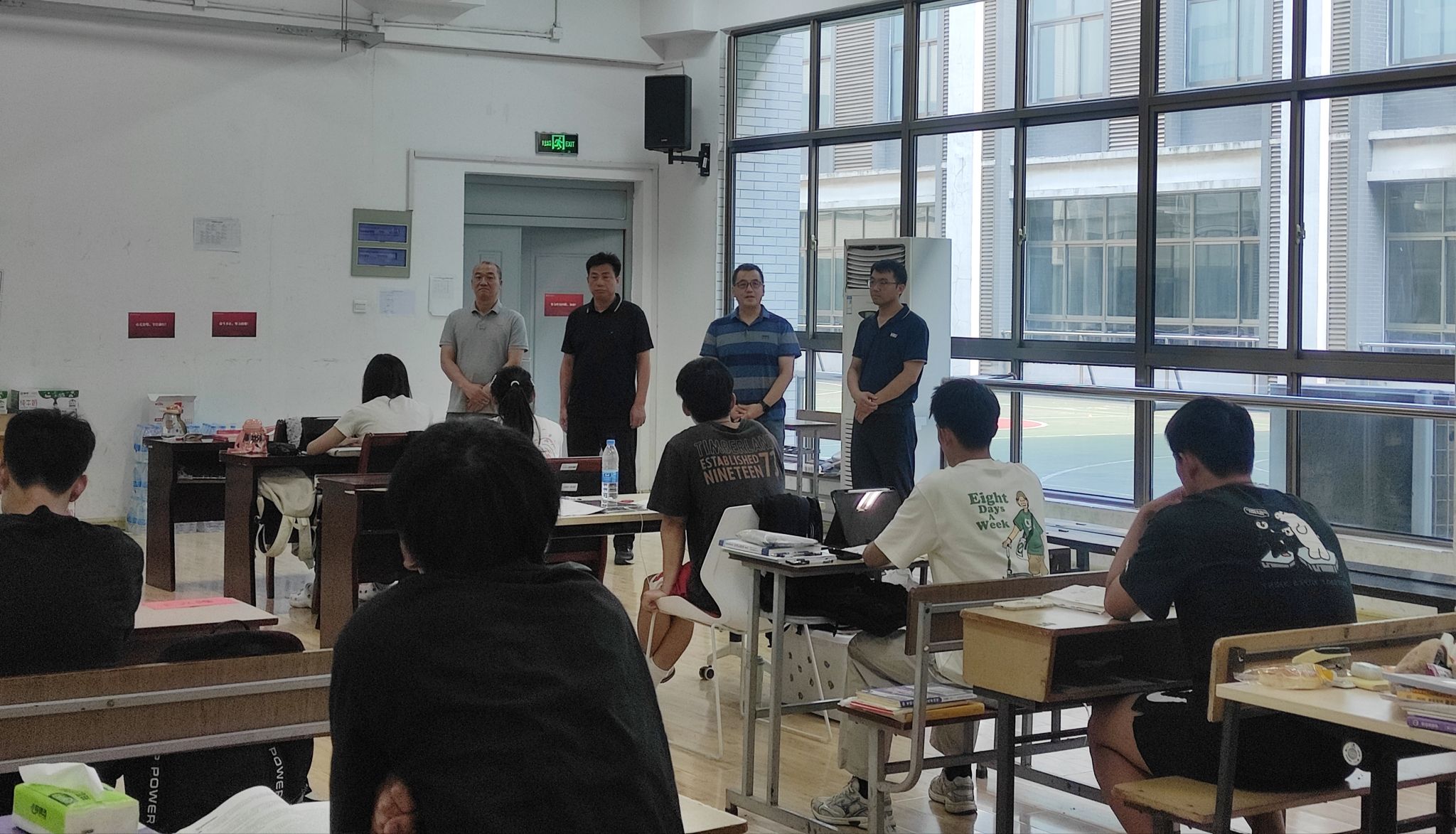 7月24日下午,院党委书记陆林召、院长蔺新茂、党委副书记周翔、副院长柏建清慰问暑期留校考研和备战师范生基本功大赛学生。