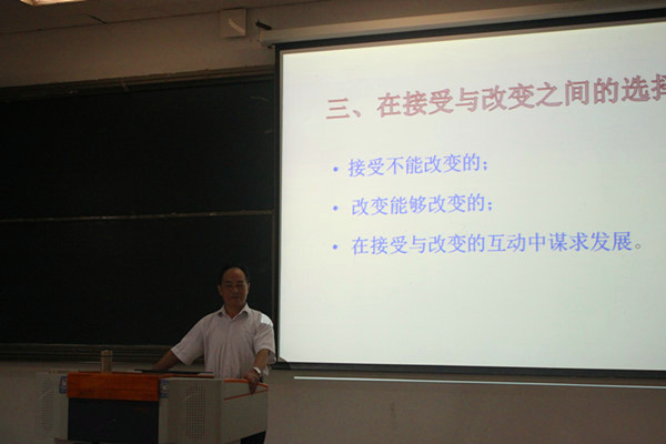 徐贵权老师,,从明志、求真、笃行等三个层面对周恩来精神进行解读,引导同学们结合自身实际,从周恩来精神中汲取自身发展所需要的养分,勉励同学们像周恩来那样,学会学习、学会思辨,学会自我认识、自我评价、自我设计,努力将个人的成长成才与中国特色社会主义事业紧密联系在一起。
