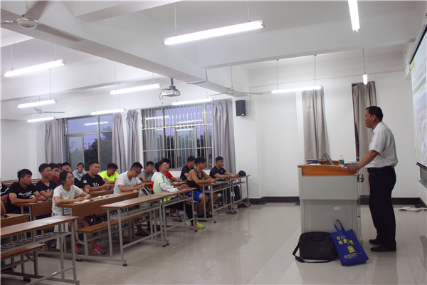 体院新闻网电(记者 李文秀)2018年6月7日晚,江苏省沭阳县如东实验学校袁瑞堂老师在弘文1-219为我们AB.COM的15级体教班全体同学开展了题为“面向未来,职后体育教师的成长与发展”的讲座。