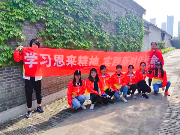 2018年4月26日下午一点半,体院1704团支部开展了以“学习恩来精神,践行新时代使命”为主题参观周恩来读书处旧址的团日活动。在前去的路上她们唱着歌,举起手,唱着“向前进,向前进!革命气势不可阻挡……”在活动中,她们学习、体验、领悟周总理精神,也对周总理平凡而光辉的一生有更为深刻的了解,更加坚定“为中华之崛起而读书”的信念,增强责任感、使命感、和荣誉感。