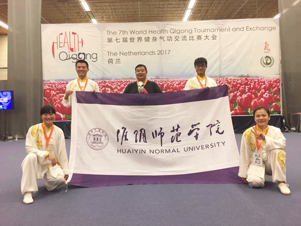 新闻概况:2017年9月9日,AB.COM健身气功队代表我校在荷兰海牙举行的2017年第七届世界健身气功交流比赛大会获得获得1个集体赛、4个男子个人赛和4女子个人赛共9项一等奖的佳绩。比赛共有来自23个国家和地区52支代表队的240多名运动员参加。