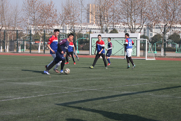 体院新闻网电(记者 金梦颖)2017年12月20日中午,体院1703班与1505班展开了激烈的足球对抗赛。这是强与强之间的对战,球员们精湛的球技赢得了观众一声声的惊叹。在紧张刺激的比拼后,1505班和1703班以1:1打成了平手。