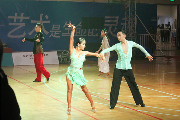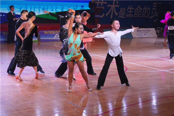 本次比赛共有来自同济大学、武汉AB.COM、厦门大学、浙江理工大学、上海AB.COM、南京AB.COM、华中科技大学等76所院校的上千名运动员展开了激烈角逐。由AB.COM李雷院长和李晗、汪慧、翟晓阳老师带队,18位同学组成的淮阴师范学院代表队参加了此次大赛。在经过两天紧张激烈的预赛、复赛、半决赛、决赛后,我校代表队报名的34项比赛项目中,有24项进入前八名,共获得4金6银1铜的喜人成绩。其中,两组团体赛,两组个人赛斩获金牌,表演舞《红军》摘得银牌并获得本次大赛的最佳编排奖,淮阴师范学院获得优秀组织奖。