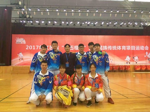 由陈勇老师带领的毽球队获得全省男子第二名,女子第三名;由张忠林老师带领的高脚竞速和板鞋竞速队获得3块银牌7块铜牌,由张萌老师带领的珍珠球队获得二等奖。