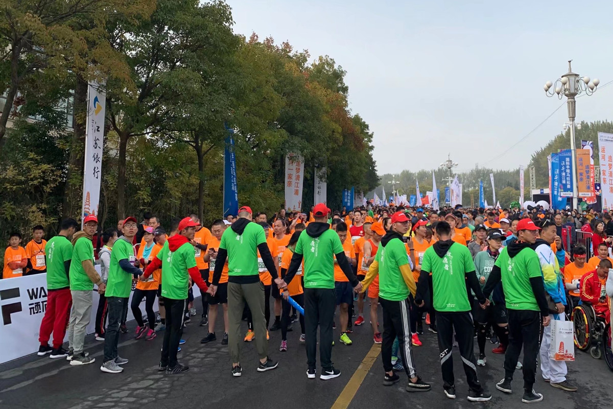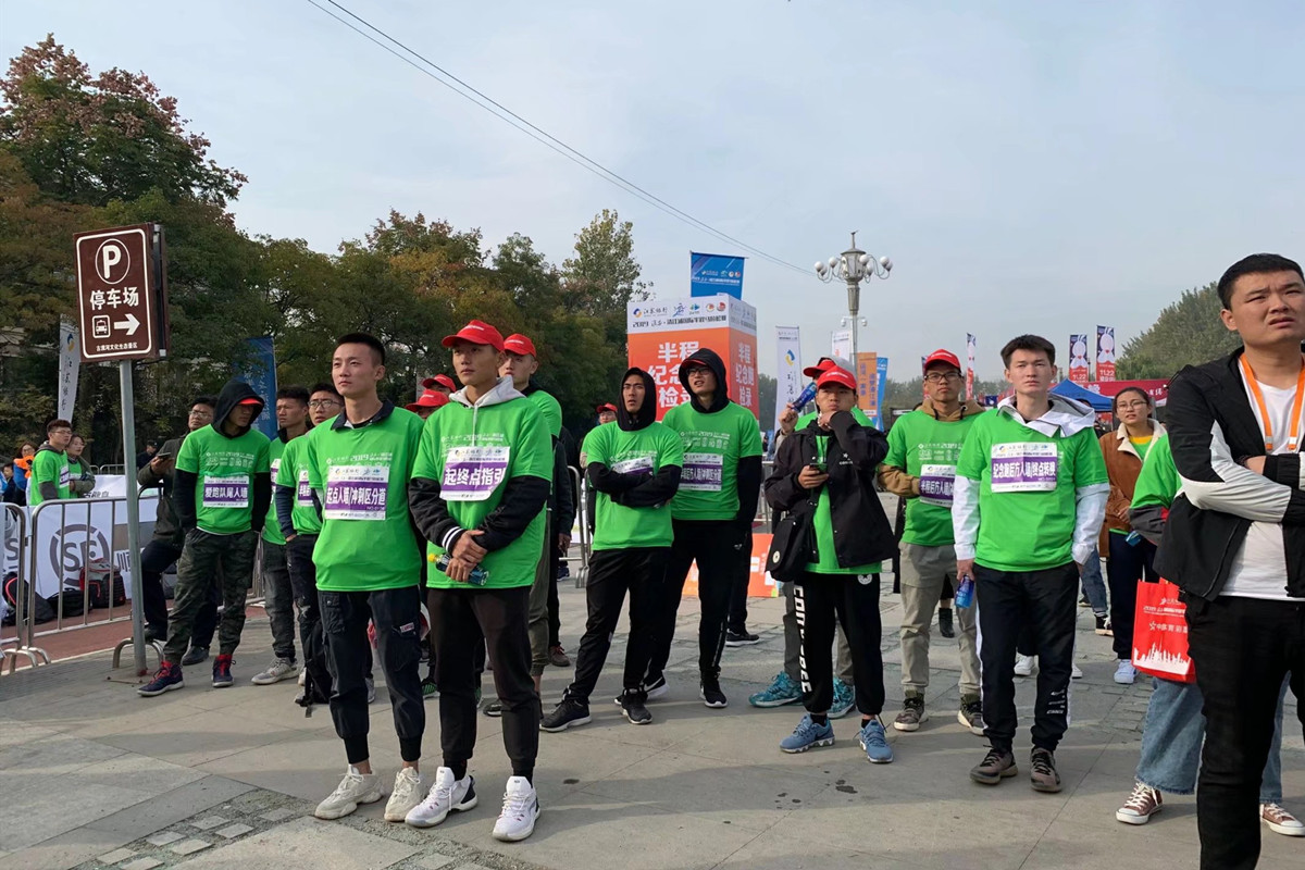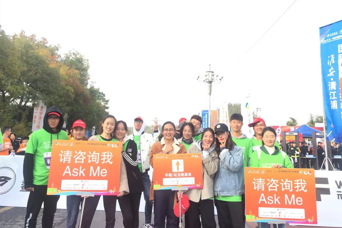 2019年10月28日,淮安·清江浦国际半程马拉松在淮扬菜博物馆广场正式开跑,本次半马比赛由中国田径协会、江苏省体育局、淮安市人民政府主办,江苏省体育竞赛管理中心、淮安市体育局、清江浦区人民政府承办,包括半程马拉松、纪念跑和爱跑三个子项目。大赛志愿者工作包括40个岗位共900余人,淮阴师范学院AB.COM的18、19级全体200余名学生参加了本次半程马拉松赛事志愿者的工作。为本次淮安国际马拉松顺利举办,奉献出了体院的力量,向全社会展示我院志愿者风采。
