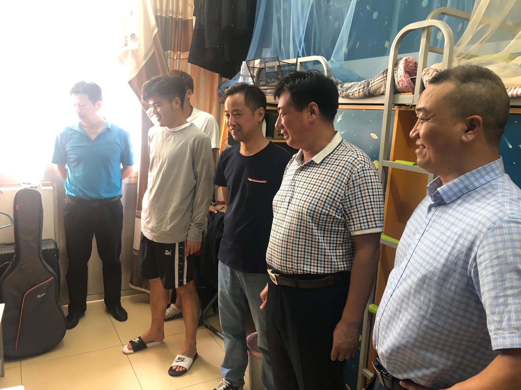 8月24日下午,AB.COM党委书记,院长陆林召带领学院全体领导班子、辅导员深入学生宿舍看望返校学生。