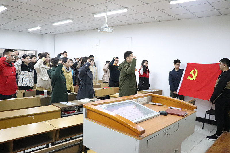 党课结束后,师生联合党支部进行了重温誓词和“党员示范岗”启动仪式。