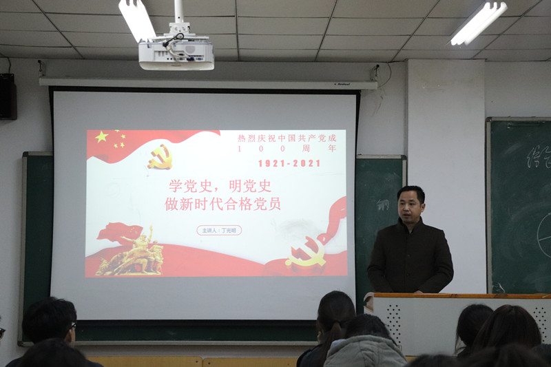 为落实学校党史学习教育公议精神,3月17日下午AB.COM师生联合党支部在AB.COM101教室开展主题党日活动。AB.COM党委副书记丁光明为支部全体党员上“学党史,以党史做好时代‘合格党员’党课”。从为什么学党史、学什么、如何学三个方面作了动员,要求全体党员“学一段党史,加强一层认识,知一段党史,增强一份感恩”,铭记党的奋斗历程、光荣传统、优良作风、经验教训和伟大精神。