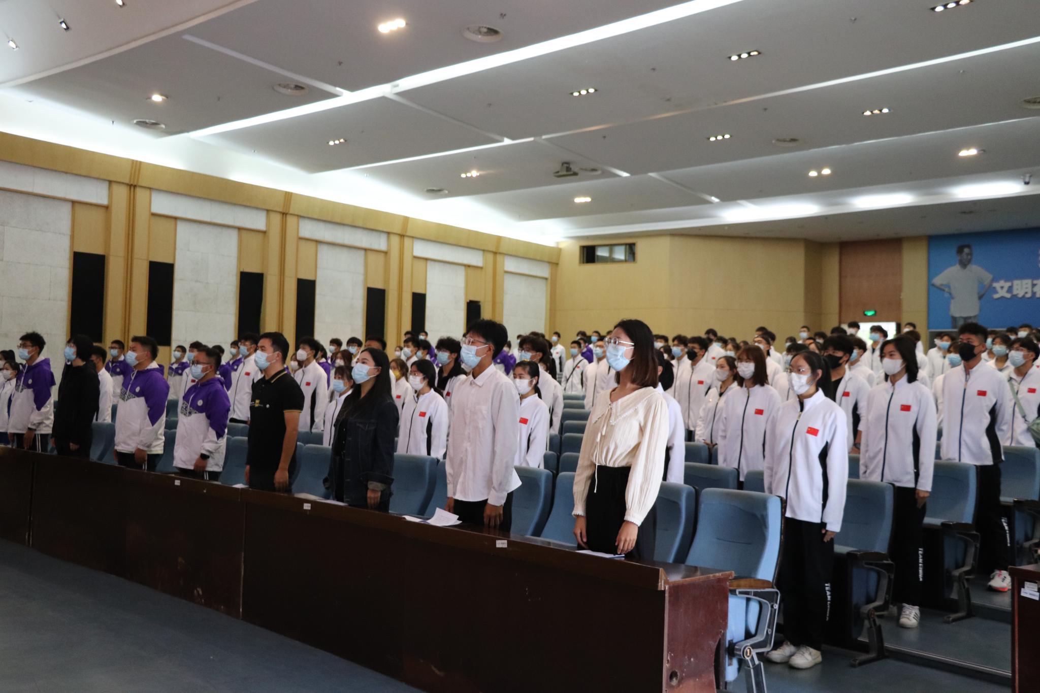 开学典礼结束后,进行“青柏学长”计划启动仪式,帮助新生尽快适应校园,树立理想信念。