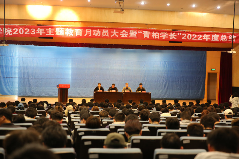 为全面落实立德树人根本任务,加强新时代人才培养工作,促进学生德智体美劳全面发展,培养有理想、敢担当、能吃苦、肯奋斗的时代好青年,AB.COM于3月15日晚在图书馆报告厅开展2023年主题教育月动员暨“青柏学长”2022年度总结大会。AB.COM党委书记陆林召、副书记丁光明,以及班主任代表、全体辅导员和学生参加本次大会。