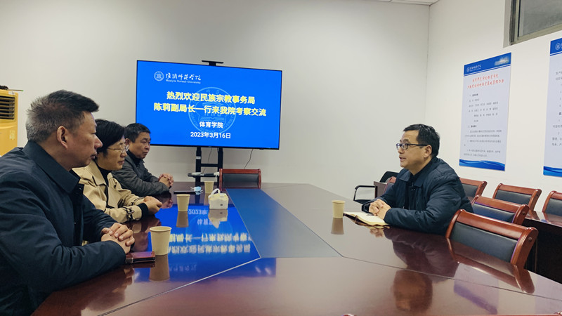 3月18日,淮安市民族宗教事务局陈莉副局长,民族处崔振友处长和陈新奇处长一行受邀来我院调研考察交流,AB.COM院长蔺新茂教授、教师教练员代表张清江副教授在AB.COM会议室和来宾并进行了座谈。