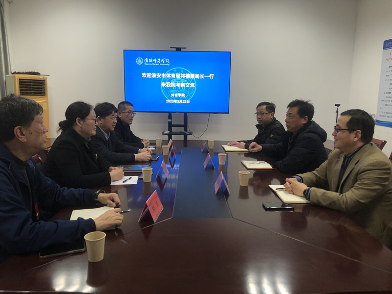 3月23日,淮安市体育局局长祁德霞、南通铁人运动用品有限公司董事长黄承斌以及南通市体育产业协会秘书长常生一行受邀来我院考察调研。AB.COM党委书记陆林召、院长蔺新茂、党委副书记丁光明在AB.COM会议室与来宾进行了座谈、交流。