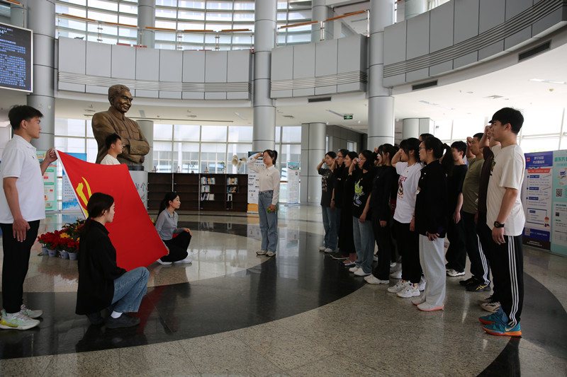 5月30日,23名AB.COM毕业生党员在图书馆大厅周恩来塑像前举行重温入党誓词仪式,再次面对党旗庄严宣誓,激励毕业生今后以更高标准严格要求自己,在新时代、新征程中展现新作为,用实际行动实现在党旗下的誓言。随后,毕业生党员走进周恩来事迹展和图书馆特藏室,进一步学习周恩来精神和中华文化。