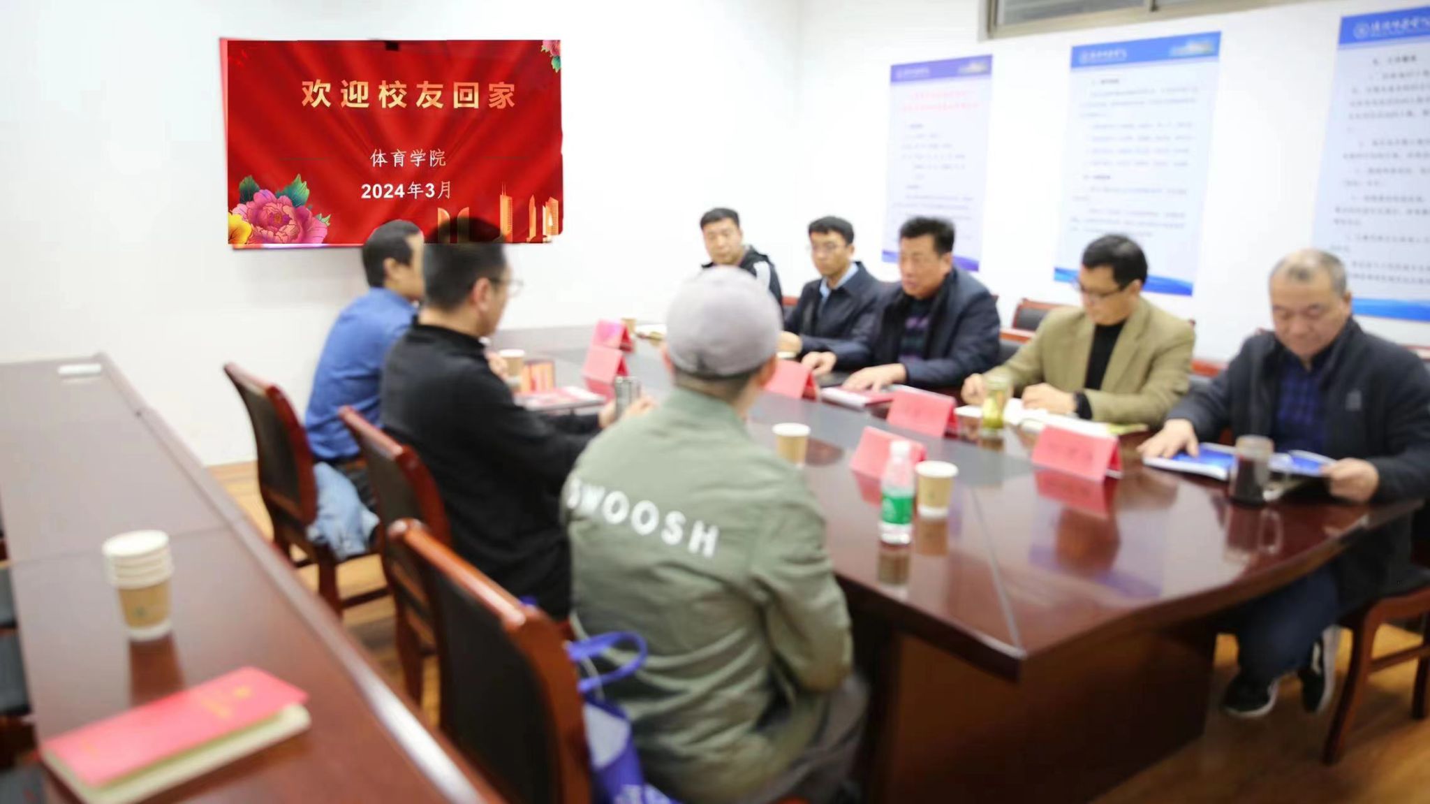 会上,党委书记陆林召代表学院党政班子对陈怀一、赵向阳两位校友来院洽谈表示欢迎。院长蔺新茂就校地情况、学院特色、硕点申报、学生发展等校友关心话题进行汇报并希望两位校友在建设高水平师范大学道路上为学院建言献策,协同育人。副院长马春林就校企合作事宜与两位校友进行深入交流。两位校友依次进行自我介绍,分享各自从事的行业领域与工作经验并表示,他们愿意结合自身的专业发展和行业资源,为体院发展提供力所能及的支持。