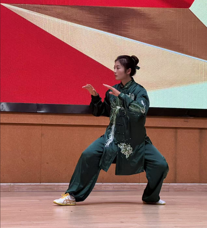 随后,三位参赛选手依次展示了队列队形、广播操、武术操、篮球、太极拳、体操以及说课模拟等项目。展示过程中,三名同学展现出了扎实的专业基本功和良好的精神风貌。他们的每一个动作都标准规范,无论是队列队形的整齐划一,还是广播操的活力四射,亦或是武术操的刚健迅猛,都赢得了在场观众的阵阵掌声。