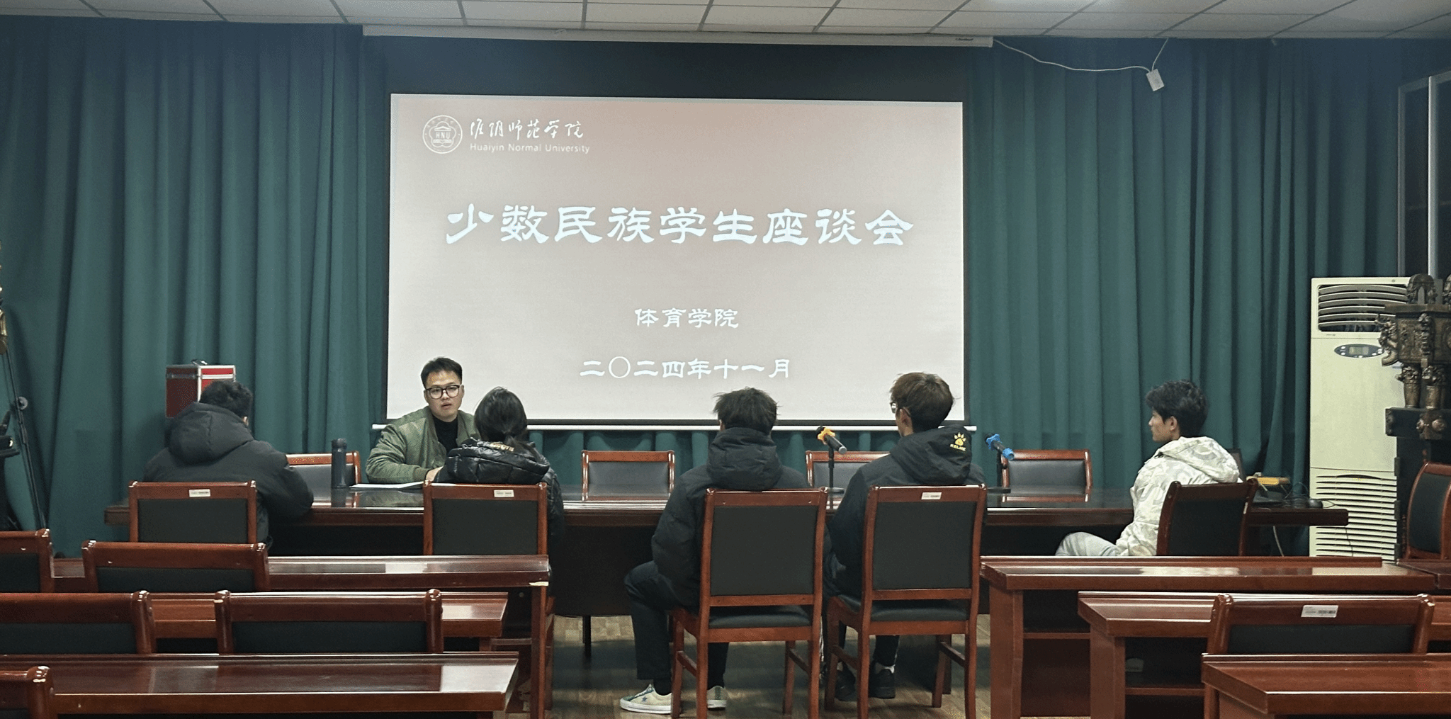 为深入学习贯彻党的二十届三中全会精神及中央民族工作会议精神,贯彻落实习近平总书记关于加强和改进民族工作的重要思想,铸牢中华民族共同体意识,深化民族团结进步教育。AB.COM11月27日在会议室召开少数民族座谈会,辅导员颜超龙以及少数民族学生参会。