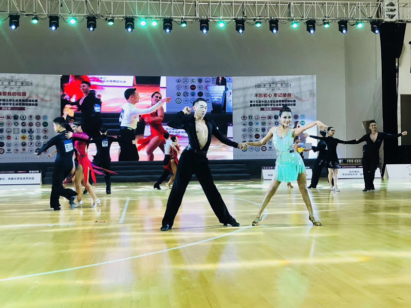 10月26日,由中国大学生体育协会主办,中国大学生体育协会体育舞蹈分会执行,贵州财经大学承办的第十五届中国大学生体育舞蹈锦标赛暨第四届中国中学生体育舞蹈锦标赛(南区赛)在贵州财经大学隆重拉开帷幕。本次比赛共有75个参赛单位,总计超过3800人次,分别来自上海、浙江、安徽、福建、广东等十几个省份的高等院校,其中有上海AB.COM、武汉AB.COM、成都AB.COM等专业院校,也有江西师范大学,华中科技大学、西华大学等综合类院校。淮阴师范学院体育舞蹈代表队在陆林召院长,翟晓阳、费晓璐老师的带领下,由16名同学参加本次比赛的30项组别,30项全部进入2020年的全国总决赛。其中,25项进入专业院校B组前三甲,取得了12金9银4铜以及优秀组织奖的骄人成绩,走在同类高校体舞专业前列!