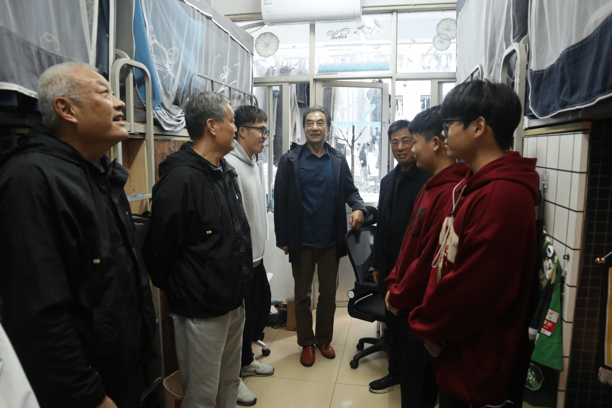 会后关工委主任陆林召陪同老教师们前往学生宿舍,他们亲切地与同学们交谈,询问大家的学习情况和生活适应状况。看到同学们良好的精神风貌以及整洁的宿舍环境,退休教师们深感欣慰。